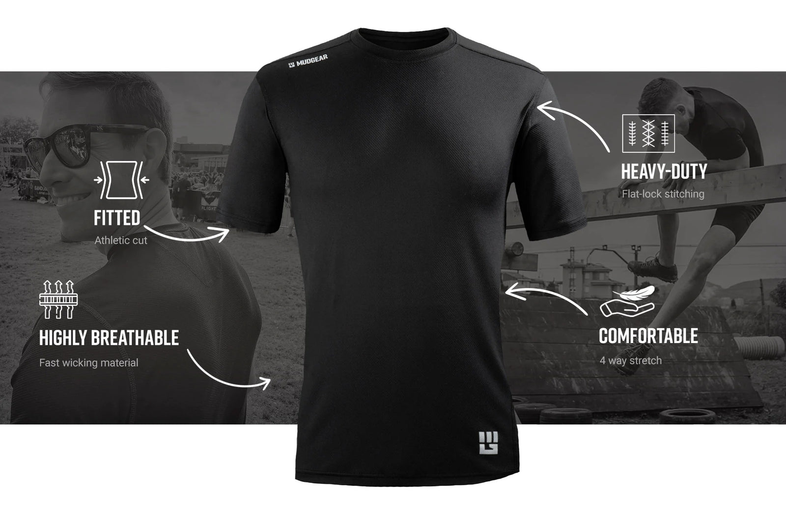 For the Women's Fitted Performance Shirt MudGear introduces a propriatary silcone grip on top of elastic band edging to secure the shirt in place during intense competition.