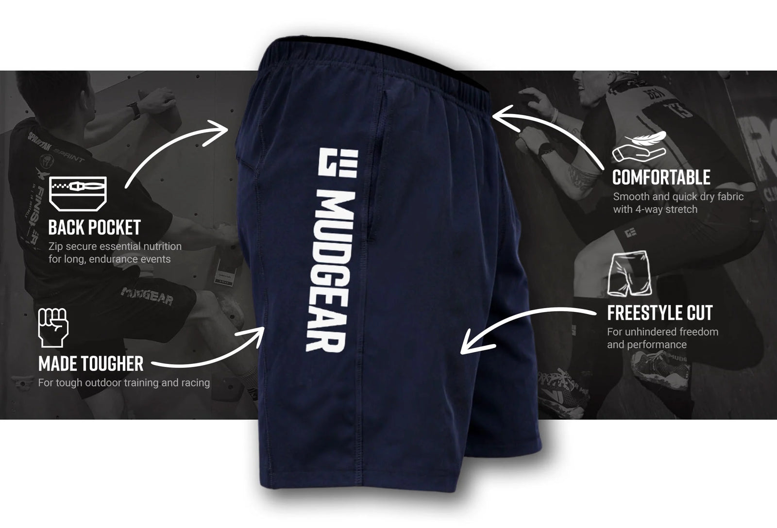 MudGear launches a better men's running short for outdoor adventure. The MudGear Men's Freestyle Shorts feature a new water resistant shell main body frabric with a fast drying inner-liner. A large horizontal zipperd pocket spans the back to create the perfect compartment for race nutrition or a phone.