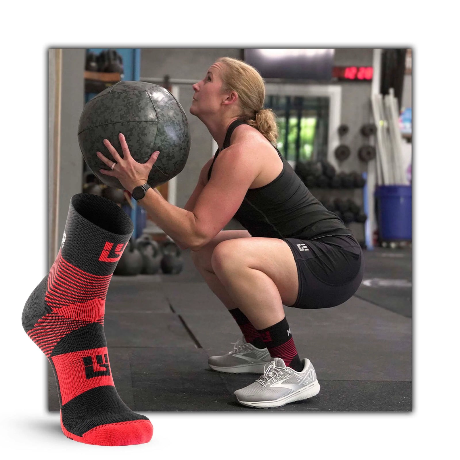 Events like Hyrox and Spartan DEKA mark the rise of "Hybrid Fitness" competitions. MudGear develops the Hybrid Training Sock featuring enhanced ankle support for stabilization and ridged traction elements for specialized events like the weighted sled push/pull, proving that MudGear innovation performs indoors as well as it does outdoors.