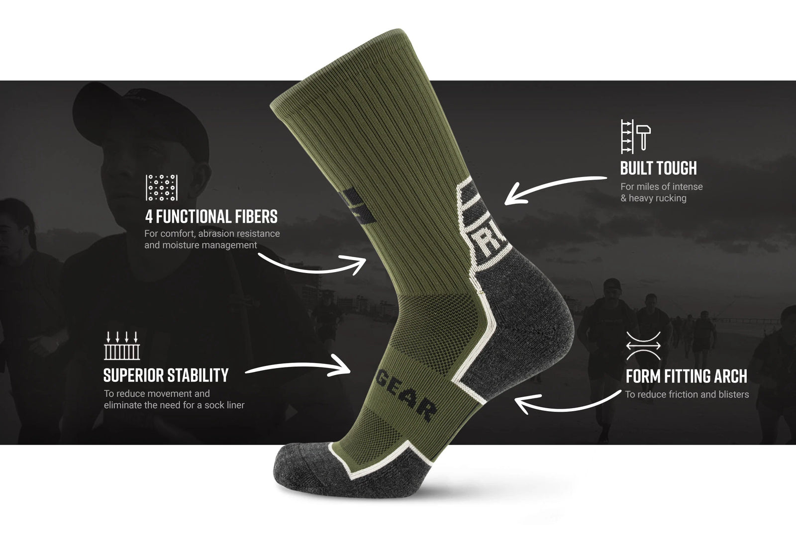 While COVID shut down most race events, MudGear customers turned to training and building community outdoors. And because they like to make everything harder, they strap extra weight on their backs, and our Rucking community starts to take shape. The MudGear Ruck Sock is the first merino wool performance sock built specifically for the sport of rucking.