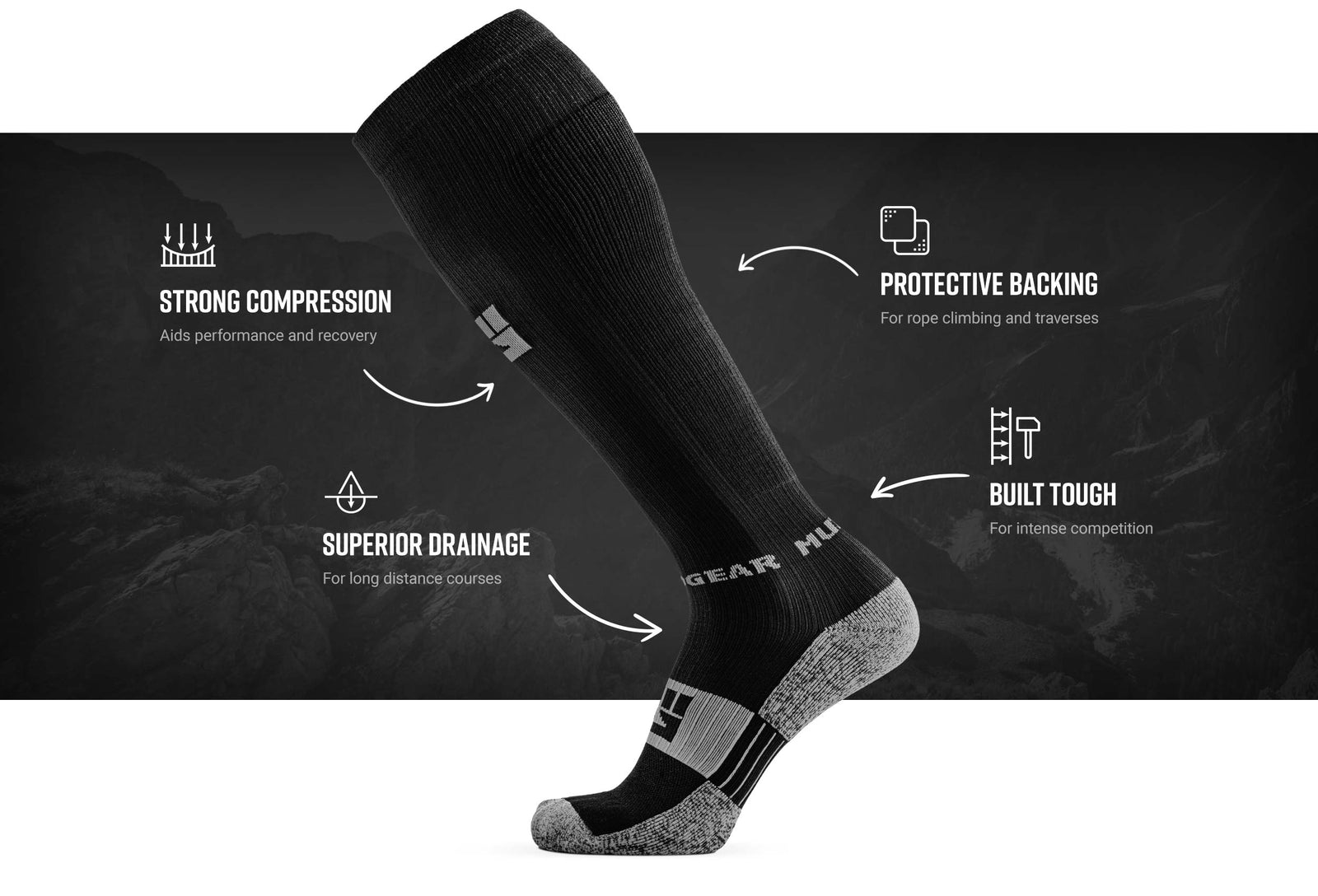 The MudGear brand launches as a grassroots effort inside the Obstacle Course Racing (OCR) community and introduces the The World's first OCR Tall Compression Sock, built for long miles and featuring extra leg protection against climbing ropes and wooden walls.